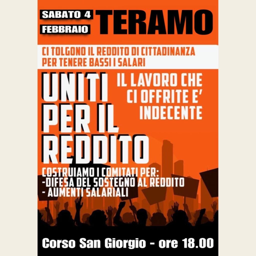 SABATO 4 FEBBRAIO TERAMO – DIFENDIAMO IL REDDITO DI CITTADINANZA