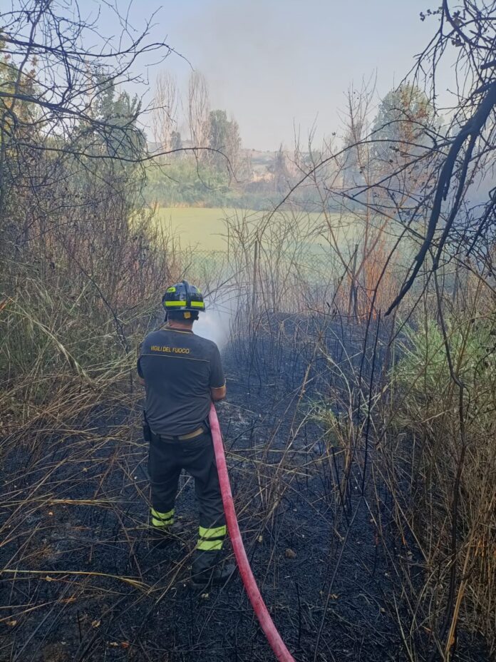 Ancora una giornata funestata da diversi incendi che hanno interessato il territorio della provincia di Teramo, determinando un notevole impegno per i vigili del fuoco del Comando locale. Incendi di sterpaglie e bosco si sono sviluppati a Boceto e Pagannoni di Campli e a Collatterato di Teramo. L’incendio di Pagannoni di Campli è quello che ha interessato una superficie maggiore, con circa 15 ettari di vegetazione andata in fumo. Diverse squadre dei vigili del fuoco di Teramo e Nereto sono ancora impegnate nello spegnimento dell’incendio che si è sviluppato nei pressi di un laghetto a Collatterato Alto. Sul posto sta operando anche l’elicottero “Drago 158” del Reparto volo dei vigili del fuoco di Pescara che ha effettuato diversi lanci di acqua per spegnere un’area boschiva e un fitto ed inaccesibile canneto da cui si è sviluppato un fronte di fiamma a circa 200 metri di distanza dalle abitazioni.