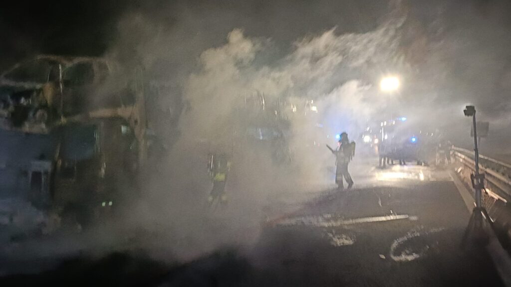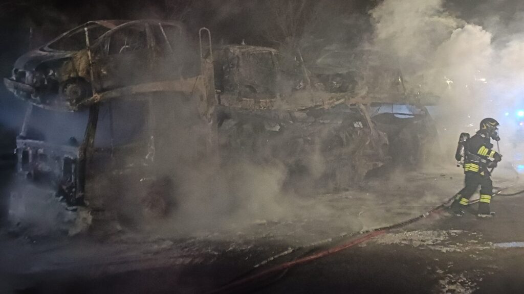 Ieri, intorno alle 22:30, tre squadre dei vigili del fuoco dei Distaccamenti di Roseto degli Abruzzi e Montesilvano e del Comando di Teramo, con l’ausilio di due autobotti del Comando di Pescara e Teramo, sono intervenute al Km 360 dell’Autostrada A14, sulla carreggiata in direzione sud, nel comune di Silvi, a seguito dell’incendio di un autoarticolato adibito al trasporto di autoveicoli. L’autista della bisarca, accortosi della presenza dell’incendio a bordo, ha abbandonato velocemente il mezzo e si è portato in posizione di sicurezza chiamando i soccorsi. Le fiamme hanno avvolto il mezzo pesante e tutte le autovetture trasportate. Il primo intervento di spegnimento è stato effettuato dalle autopompe di Montesilvano e Pescara che hanno raggiunto il punto dell’incendio contromano scortate dalla Polizia autostradale, vista la difficoltà dell’autopompa di Roseto ad avanzare in corsia sud a causa della lunga fila di automezzi fermi in coda. Le operazioni di spegnimento dell’incendio sono state piuttosto complesse. I vigili del fuoco hanno provveduto a mettere in sicurezza l’autoarticolato che è andato completamente distrutto dalle fiamme insieme alle autovetture trasportate. Sull’autostrada, che è stata chiusa al traffico, si sono formate lunghe file di automezzi. Sul posto sono intervenuti anche la Polizia autostradale del VII tronco di Città Sant’Angelo e personale di Autostrade per l’italia per gli adempimenti di propria competenza.
