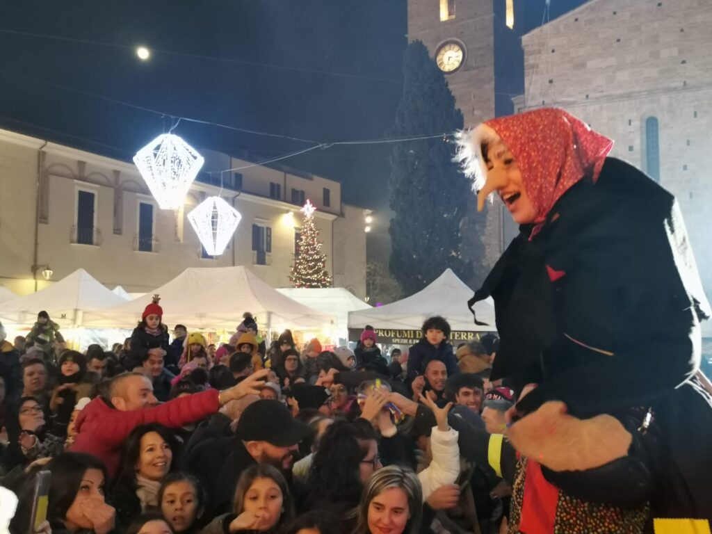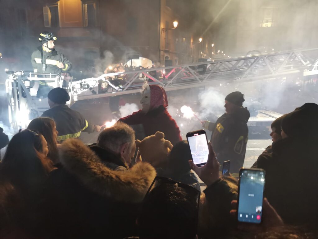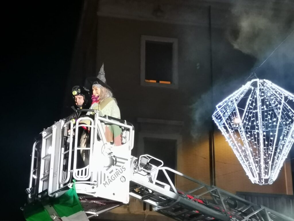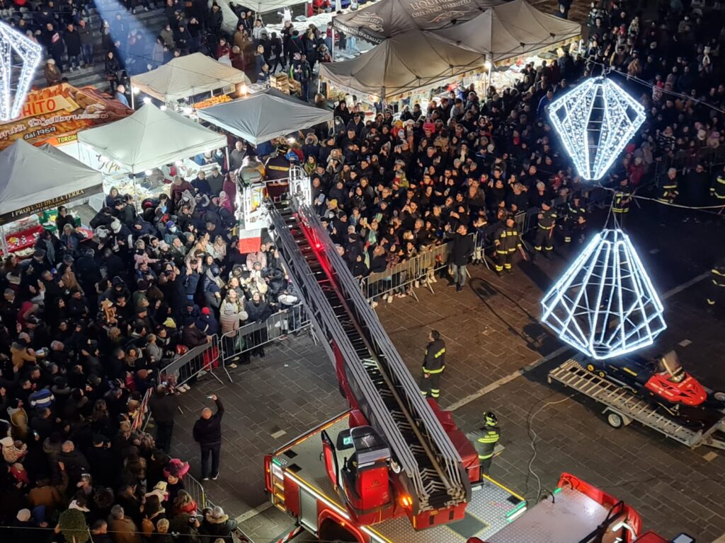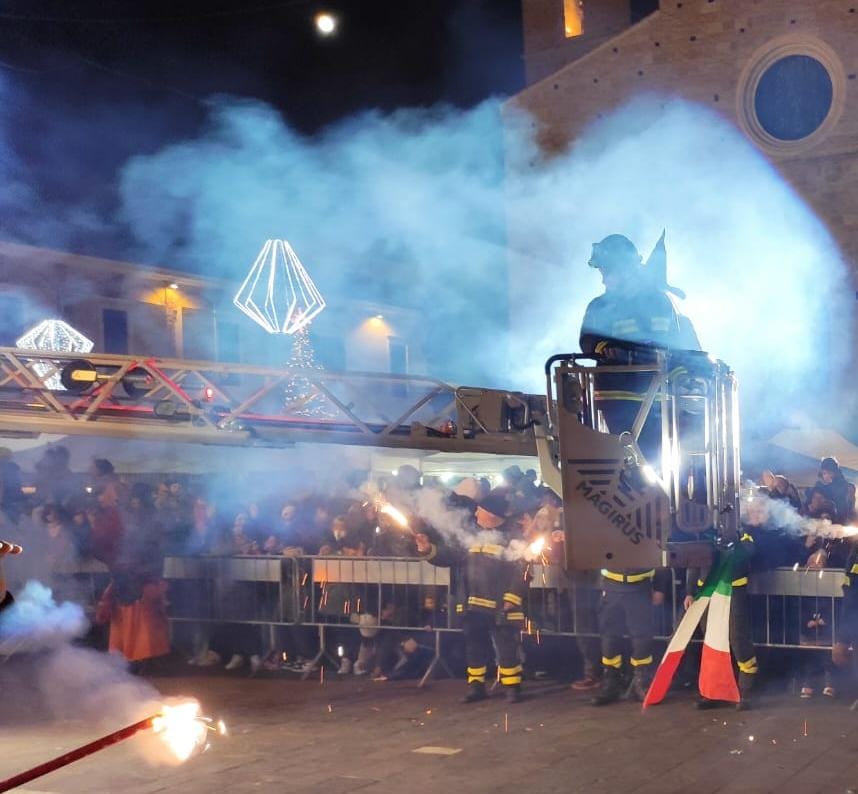 Tanti bimbi in piazza Martiri a Teramo per la Befana dei vigili del fuoco che all’arrivo del buio è comparsa dal palazzo della TEAM, da dove ha iniziato la discesa sul cestello dell’autoscala, raggiungendo la piazza sottostante, gremita di bambini. Le buone condizioni del tempo hanno favorito una grandissima affluenza nella piazza centrale, per quella che è ormai diventata una tradizione teramana del giorno dell’Epifania ormai alla 14esima edizione. Tutti quindi con lo sguardo rivolto verso l’alto per osservare con stupore la discesa nella piazza, concluso in un tripudio di applausi e i sorrisi dei più piccoli che hanno ricevuto in dono tante caramelle. L’evento è stato organizzato dall’Associazione Grisù – Amici dei Vigili del Fuoco e della Sezione di Teramo dell’Associazione Nazionale dei Vigili del Fuoco in collaborazione con il Comando Provinciale dei Vigili del Fuoco di Teramo e con il patrocinio del comune di Teramo.