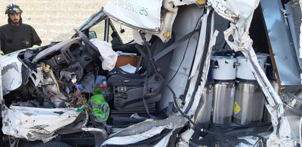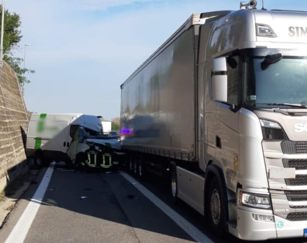 Due i mezzi coinvolti: un furgone Iveco Daily adibito al trasporto di bombole di ossigeno per uso medicale e un autoarticolato Scania. La collisione, secondo le prime verifiche, è avvenuta mentre il furgone si immetteva in autostrada uscendo dall’area di servizio Tortoreto. L’urto contro l’autoarticolato è stato violento. Le lamiere si sono accartocciate e alcune bombole trasportate si sono danneggiate perdendo ossigeno.