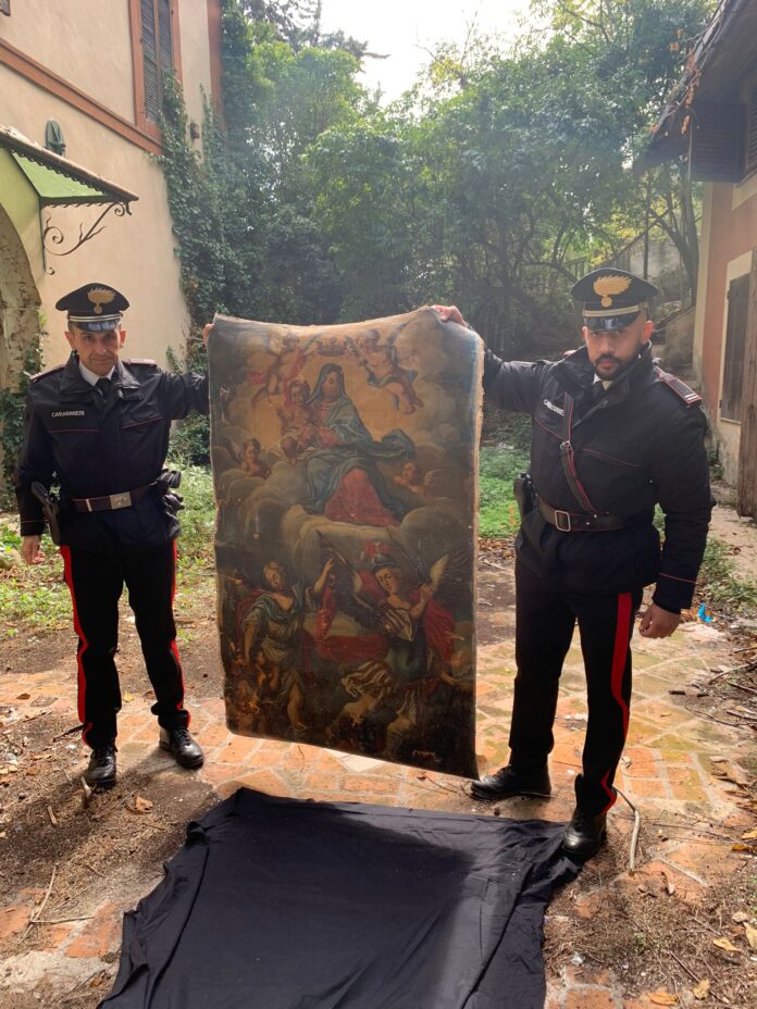 Lo stesso è stato posto in sequestro e affidato ai Carabinieri del TPC dell’Aquila che lo custodiranno mantenendolo a disposizione dell’A.G. Il dipinto nonostante sia stato arrotolato e conservato in luogo non idoneo, si presenta in discrete condizioni.
