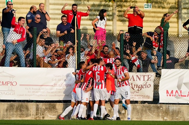 Grande partita del Città di Teramo che trionfa per 4 reti a 3 sul Penne 1920. Subito al 5′ Città di Teramo in vantaggio con rigore trasformato da Palumbo. Raddoppio al 20′ con Nikita Kovalonoks. Il Penne accorcia le distanze al 28′ con il rigore trasformato da Spadafora. Due minuti e di nuovo il Penne 1920 con rete di Di Domizio. Allo scadere del 45′ Nikita Kovalonoks segna un’altra rete , ma si becca subito un’espulsione per doppia ammonizione. Strada il salita per il Città di Teramo che gioca tutto il secondo tempo in dieci e subisce al 25′ il pareggio di Sichetti del Città di Penne. Ma al 90′ grande goal di Cozzi che consegna la vittoria alla squadra biancorossa.