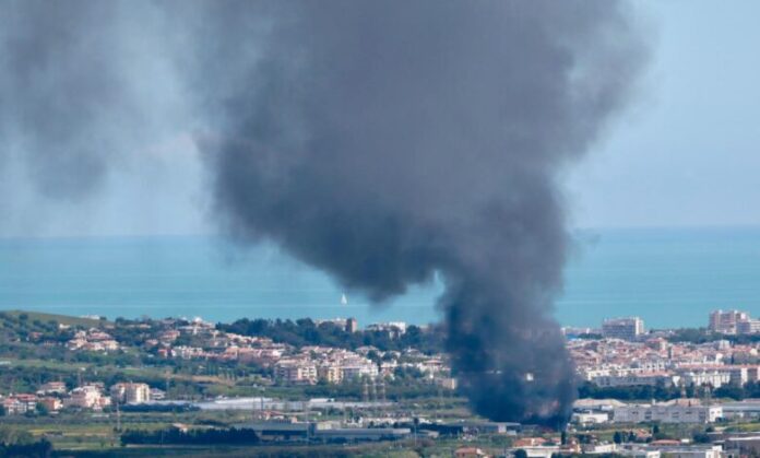 Una densa colonna di fumo nero si è alzata nel cielo, risultando visibile anche a decine di chilometri di distanza, in particolare dalla Val Vibrata e da numerosi centri dell’entroterra abruzzese.