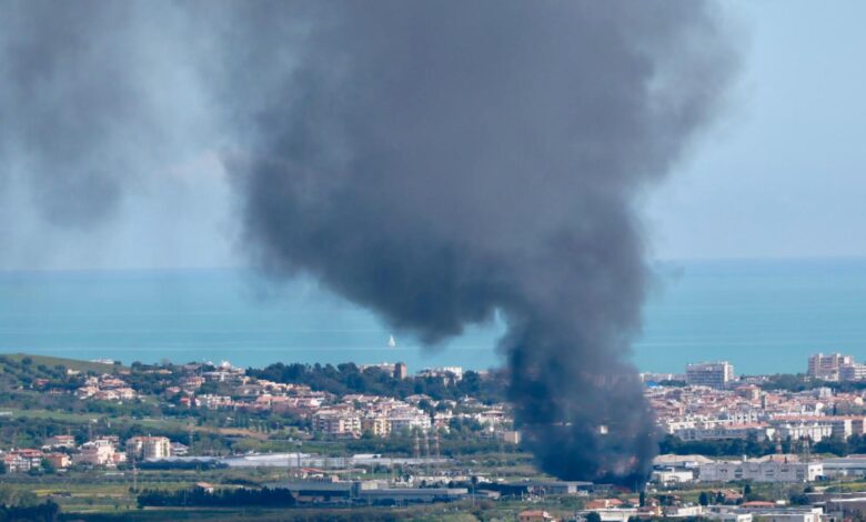 Maxi incendio in un’azienda al confine tra Marche e Abruzzo: nube visibile a chilometri di distanza