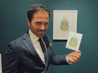 “L’Albero di Natale e le sue Stelle”, questo il titolo dell’opera, è realizzata con pastelli su carta e fa parte della serie “gli Alleati”. L’autore ha interpretato il tradizionale albero natalizio utilizzando una palette di colori accesi e improntando l’illustrazione a un dinamismo che rimanda all’entusiasmo natalizio.