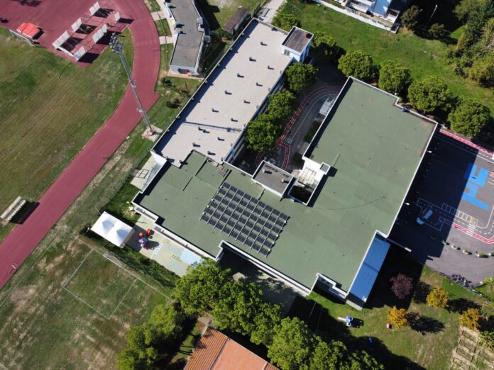 Da ieri la scuola “Don Milani” è verde e sostenibile. E’ stato infatti messo in funzione un impianto fotovoltaico costituito da 54 pannelli che, posizionati sul tetto dell’edificio ed in grado di generare ben 20 Kw di potenza, produrranno corrente per il fabbisogno del plesso. L’ investimento garantirà l’autosufficienza energetica, la riduzione dei costi e la produzione di energia pulita con conseguente abbattimento dell’emissione di Co2. La messa in funzione di questo impianto fotovoltaico equivale ad aver piantato circa 1200 alberi che durante la loro vita assorbiranno 250 tonnellate di anidride carbonica. A breve, un secondo impianto entrerà in funzione nella scuola di Colleranesco.