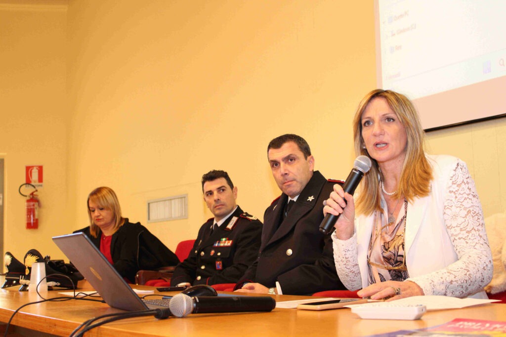 Dopo i saluti della dirigente scolastica del Polo Tecnologico Economico “Alessandrini-Marino-Pascal-Comi-Forti” Maria Letizia Fatigati, sono intervenuti Gianluca Ceccagnoli – maggiore dei Carabinieri della Compagnia di Alba Adriatica, per la Polizia di Stato Caleb Brustenga – dirigente della Squadra mobile, Benedetta Urbani – dirigente della Digos e Angela Vendittelli – sovrintendente capo della Squadra mobile, e l’avvocato Paola De Federicis – presidente provinciale delle ACLI Teramo. Ha moderato i lavori Francesca Martinelli, rappresentante dell’associazione “Società civile”.