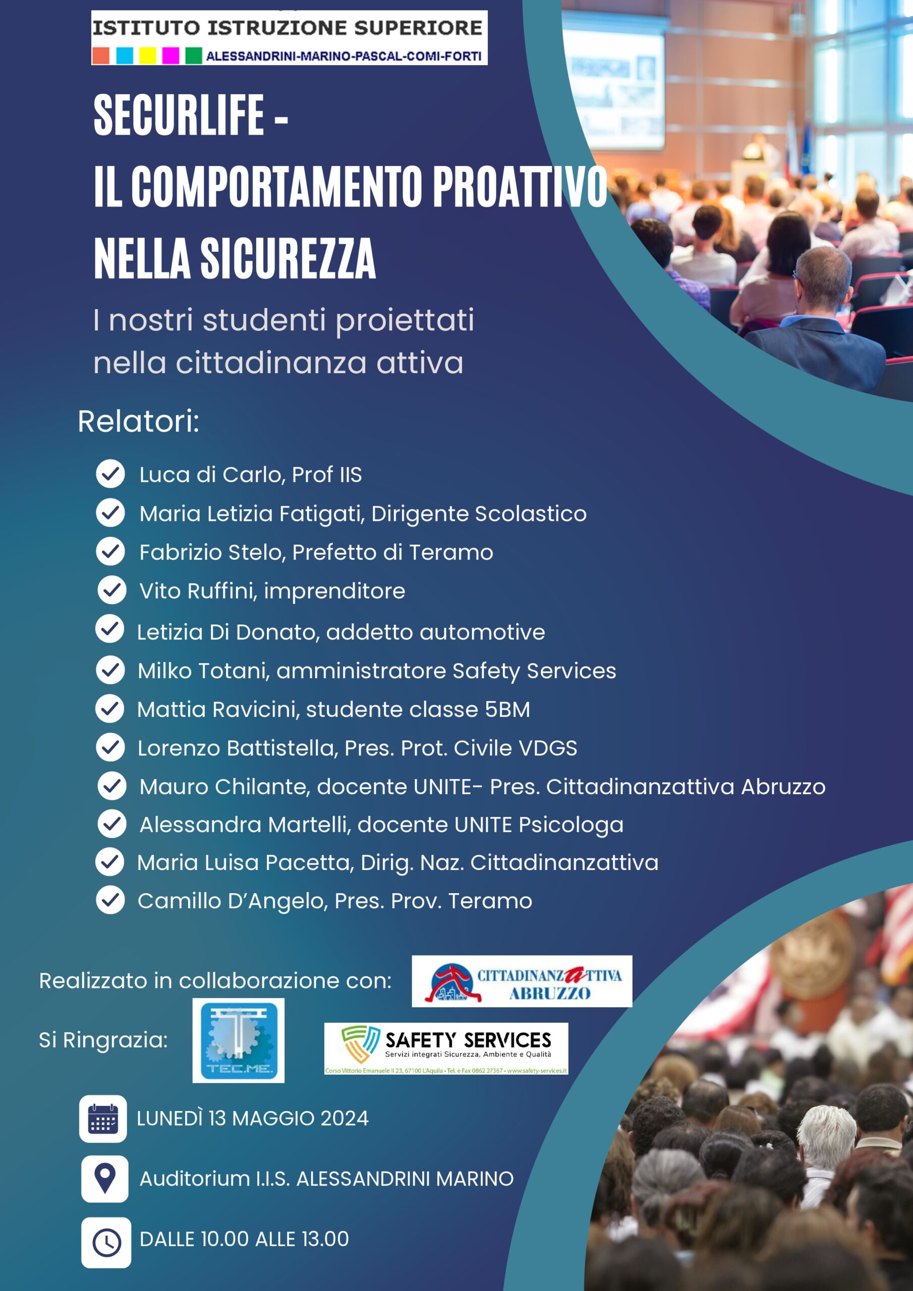 E’ il senso di un convegno che si terrà lunedì 13 maggio presso l’auditorium dell’Istituto “Alessandrini-Marino-Pascal-Comi-Forti” di Teramo in collaborazione con Cittadinanza attiva Abruzzo e con il contributo delle aziende TEC.ME di Mosciano S. Angelo e Safety Services dell’Aquila.