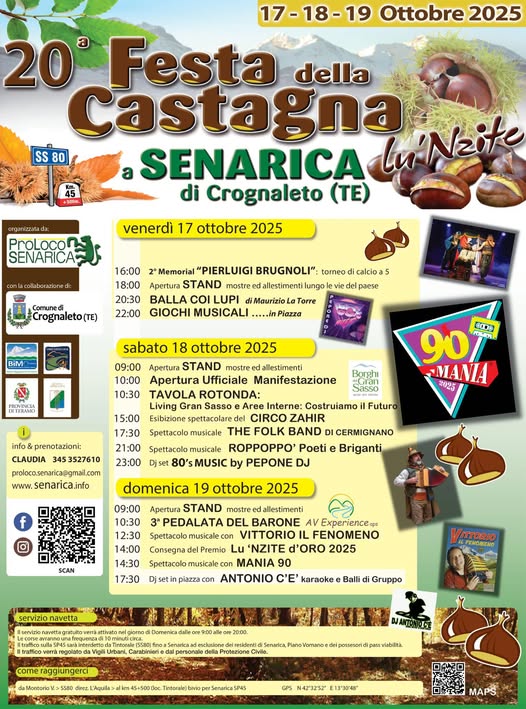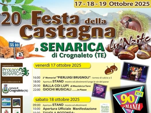 In occasione della ventesima edizione della Festa della Castagna di Senarica, che si svolgerà dal 17 al 19 ottobre 2025, il Comune di Crognaleto e la Pro Loco di Senarica lanciano una nuova e ambiziosa iniziativa: “Living Gran Sasso e Aree Interne: costruiamo il futuro”.