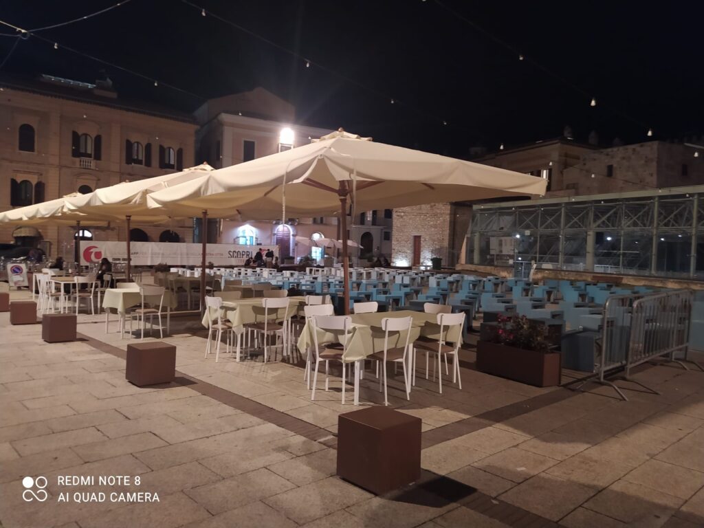 Con l’emergenza Covid, in città, nei quartieri e nelle frazioni, tutti i pubblici esercizi hanno avuto la possibilità di posizionare tavolini all’esterno, occupando più suolo pubblico della norma da parte degli occupanti ma lo si è concesso ex novo anche a chi concessione non ne aveva, naturalmente entro i limiti della viabilità e della circolazione dei mezzi di locomozione e delle persone.