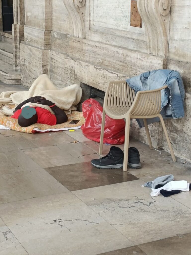Da alcuni giorni è tornato in città, dorme sotto i portici di corso San Giorgio, e quando non riposa fa il bullo con chi non gli “regala” il soldino.