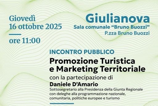 Il prossimo incontro pubblico si terrà Giovedì 16 ottobre, alle ore 11:00, a Giulianova, presso la sala comunale “Bruno Buozzi” in piazza Buozzi. Un appuntamento di rilievo che vedrà la partecipazione del Sottosegretario alla Presidenza della Giunta Regionale con deleghe alla programmazione nazionale, comunitaria, politiche europee e turismo, Daniele D’Amario.